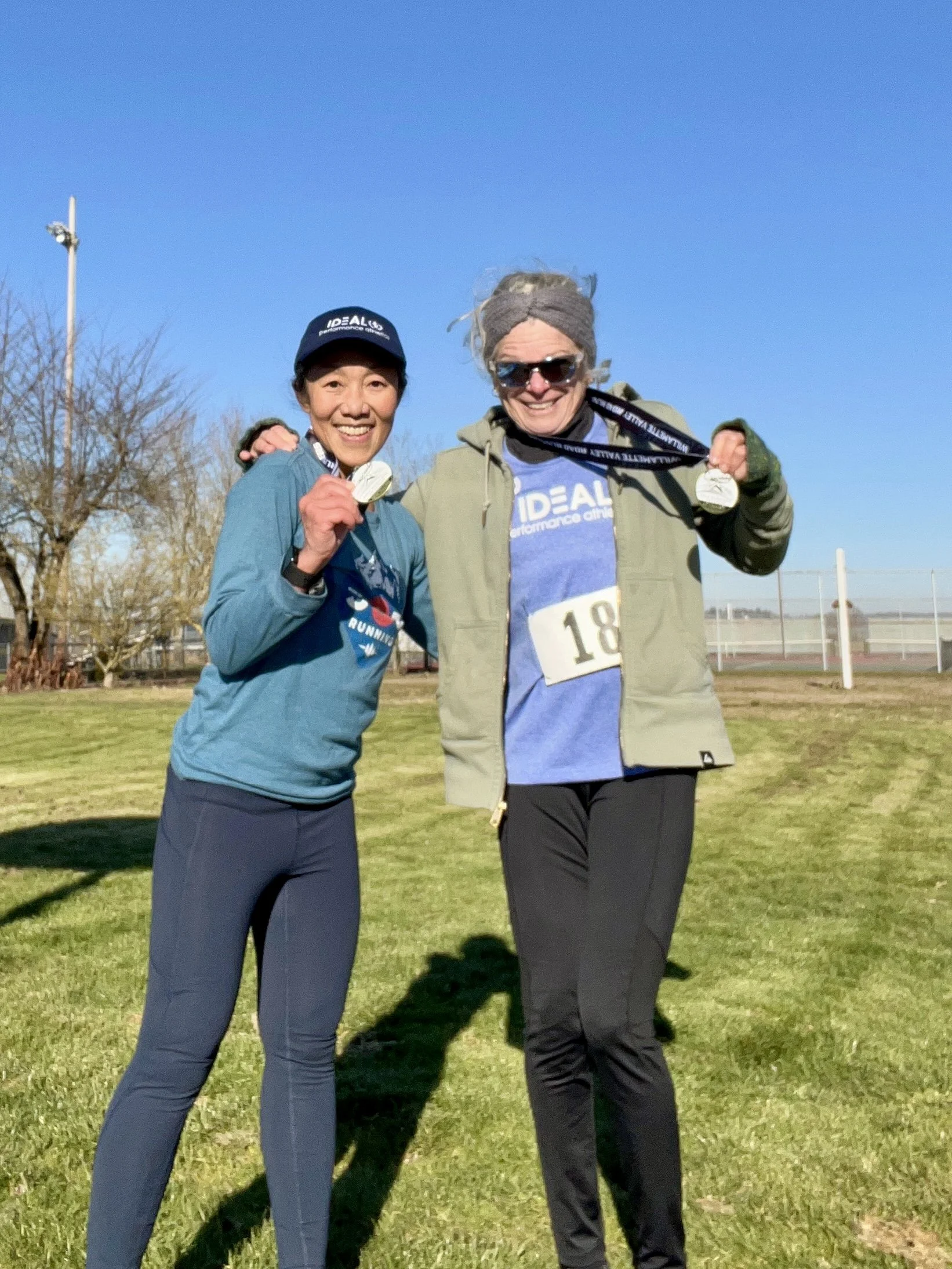 Trisha Kluge and Gina Olson took to the frigid streets of Turner,Or to compete in the Cascade Half Marathon & 10k.